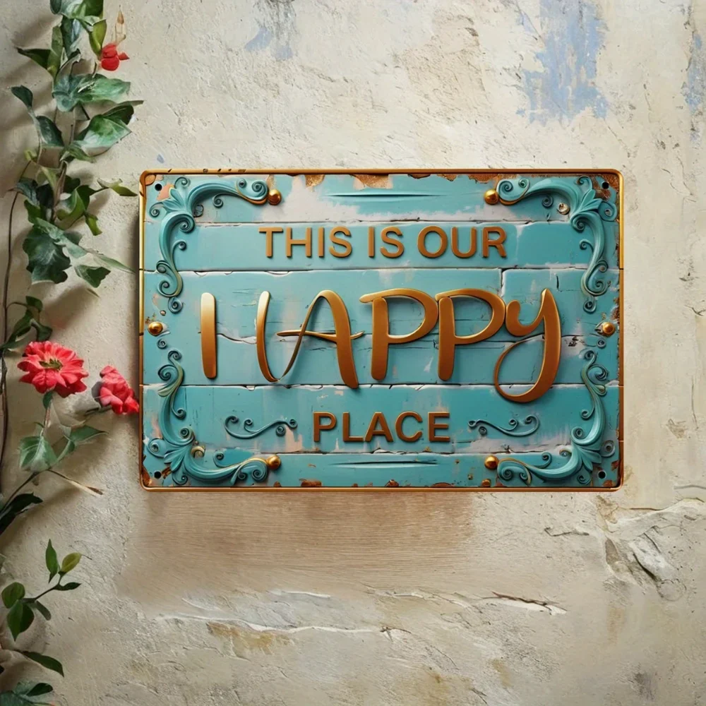 Bring warmth and personality to your space with this vintage-style “This Is Our Happy Place” metal wall sign. Featuring a rustic retro design, it’s a perfect decorative accent for kitchens, bars, restaurants, coffee shops, or a cozy man cave. Crafted from durable metal, this sign is suitable for both indoor and outdoor display, making it a versatile piece that adds charm and a welcoming feel to any wall. Whether used in a home or business setting, it creates a relaxed atmosphere and highlights the places where good times and happy moments happen.